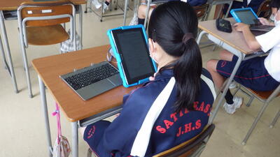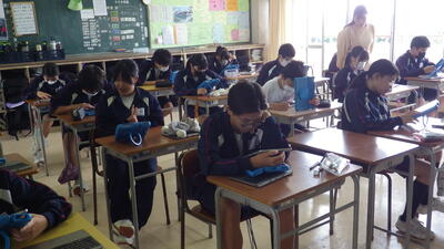 総会資料をタブレットに配信して、検討を行いました。生徒総会へ向けて、しっかりと意見交換ができていました。