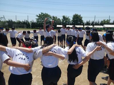 スローガン、「空の下 笑顔と努力の 青春を」を胸に、自分たちの力でつくり上げた体育祭、ここで学んだことを今後の生活に生かしていきましょう。