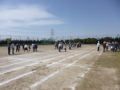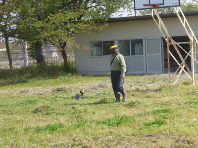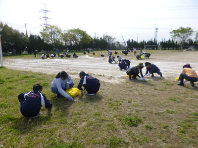 5月の体育祭へ向けて、校庭のトラックを中心に、除草を行いました。