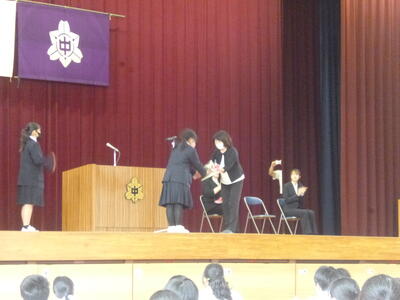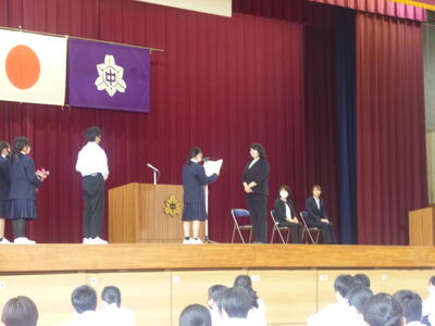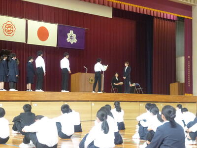 4月26日(金)の6校時に、離任式を行いました。全生徒が最後までしっかりと話を聞けたのはもちろん、代表生徒も感謝の気持ちをしっかりと伝えることができ、これまでの絆を改めて確かめ合う厳かな雰囲気のあふれる式となりました。