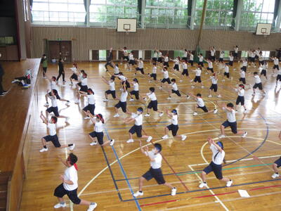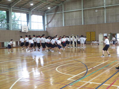 5月1日(木)の5、6時間目に、体育祭の全体練習を実施しました。雨天のため、体育館での実施となりましたが、生徒たちの心は熱く燃えており、当日が楽しみになりました。