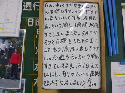 どの運動部も、6月の学校総合体育大会等を目指し、目標をもって頑張っていきましょう。