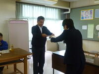 幸手市教育委員会から、運営委員の皆様に、初めに任命書を手交していただきました。昨年度まで長きにわたり、本校のためにご尽力いただいた方々が任期を終えられましたが、本年度から、3名の委員が加わり、新たなスタートを切ることができました。